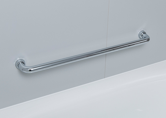 壁面には手摺を取り付けることで、体に無理な負担なくスムーズに浴槽に入りやすいように配慮しています。
