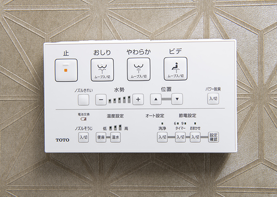 ウォシュレット(リモコン式)を標準採用。温水洗浄・脱臭・暖房便座など、快適性を高めたトイレ空間を実現しました。